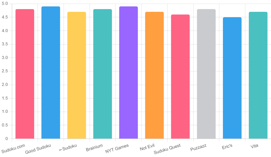 This bar chart underscores the near-flawless scores, affirming 2025’s iOS Sudoku excellence.