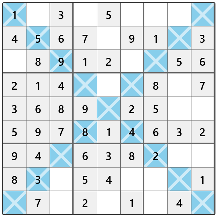Fun Fact: The “X” in X-Sudoku comes from the two diagonals forming a giant “X” across the grid — a visual cue that instantly tells players the extra rule is in play.