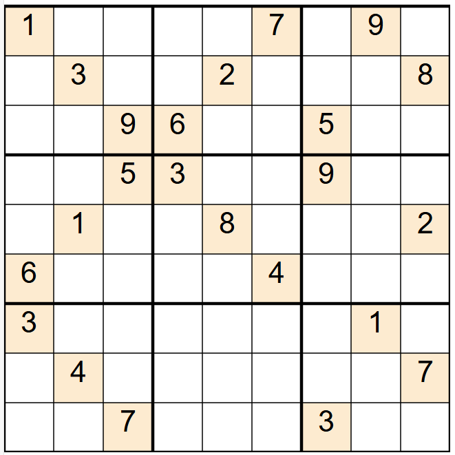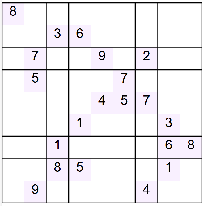 Historical Note: Named for its “deceptively simple” look, it topped Wikipedia’s hardest list and starred in Nature’s “Chaos Within Sudoku” paper (2012), where its solving dynamics showed transient chaos. Rated 3.5789 on a “Richter scale” of hardness—ultra-hard.