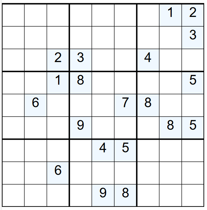 Why It’s Hard: Ultra-sparse (20 givens), it requires candidate tracking across the entire grid, often hitting solver limits.