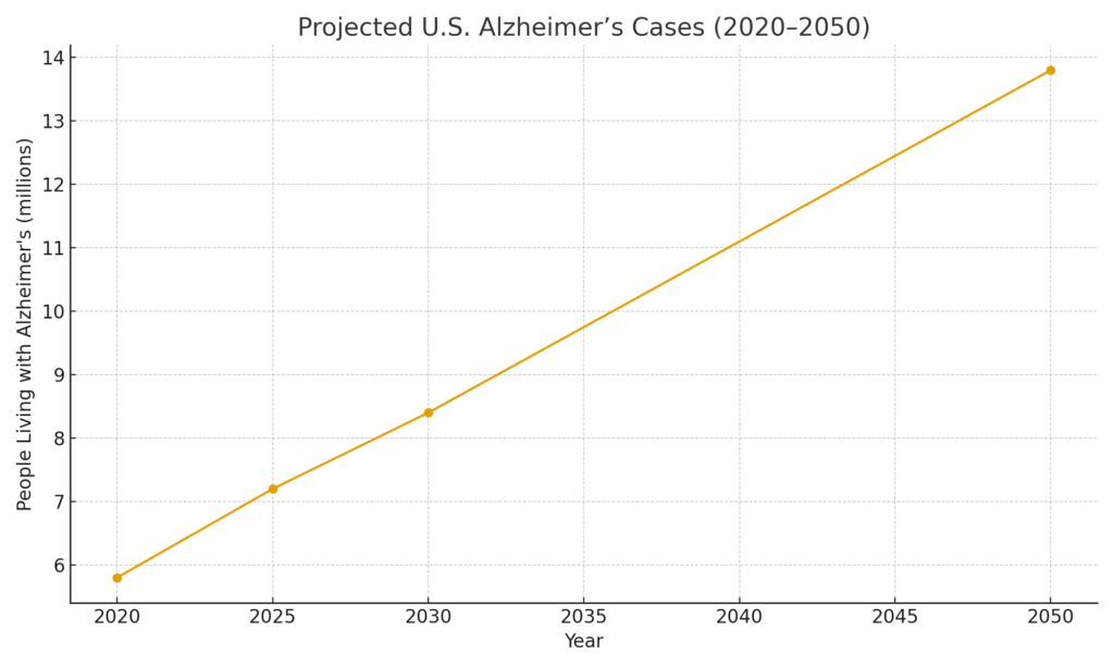 Every 65 seconds, someone in the United States develops Alzheimer’s. By 2050, that number could climb to nearly 14 million Americans.