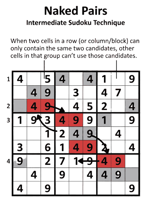 Ans- A naked pair in Sudoku occurs when two cells in the same row, column, or 3×3 box share exactly the same two candidates. Those two numbers can be eliminated from all other cells in that unit, making it a powerful intermediate Sudoku solving technique.