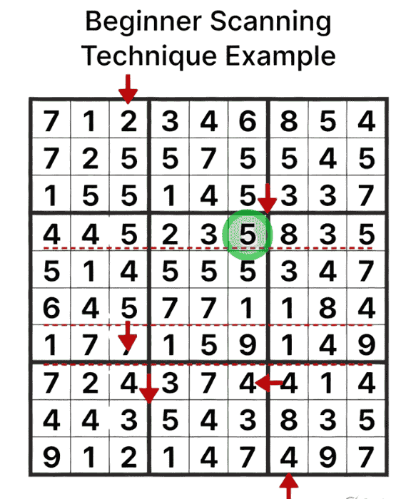 1. Scanning / Cross-Hatching (The Most Basic Sudoku Strategy)